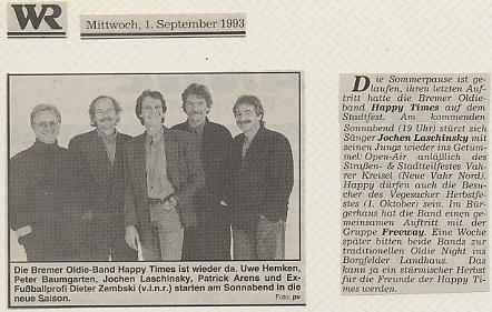 "Schöne Zeiten mit den Happy Times" aus Weser Report vom 05.03.1995