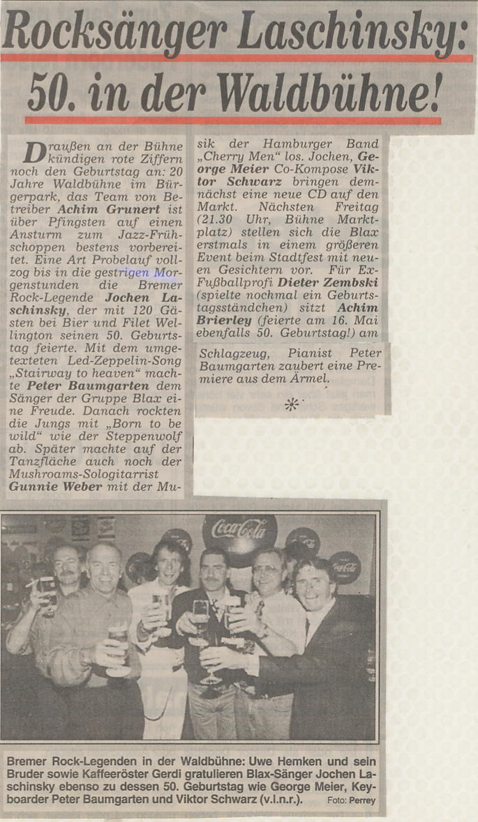 "Beat-Legende Jochen Laschinsky (Teil 2)" aus Bremer Nachrichten vom 21.05.1996