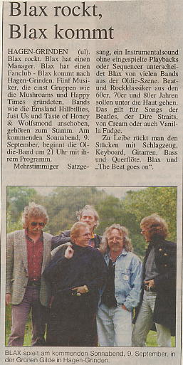 "Die hervorragenden BLAX" aus Münsterländer Zeitung vom 20.03.2000