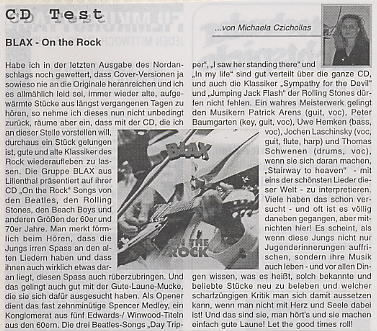 "Neue CD: BLAX on the rock" aus Roland Bremen vom April 2001
