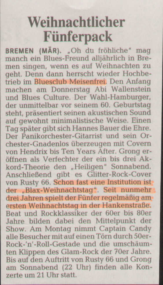 "BLAX... wie guter Wein mit dem Alter immer besser" aus Weser Kurier vom 15.12.1998